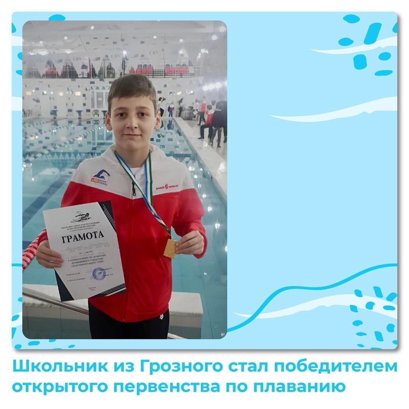 12-летний школьник из Грозного Джабраил Дадашев завоевал золотую медаль на открытом первенстве по плаванию.