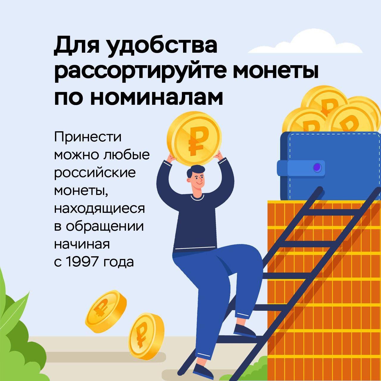 В целях экономии времени мелочь рекомендуется рассортировать по номиналам. Обменять можно даже погнутую, просверленную или поцарапанную монету.