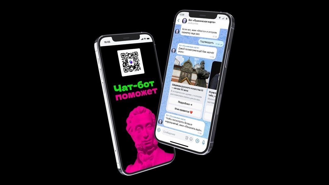 Откройте чат, подтвердите местоположение, и вы получите подборку актуальных событий на ближайшие даты. Из чата можно сразу же перейти к покупке билетов по «Пушкинской карте».