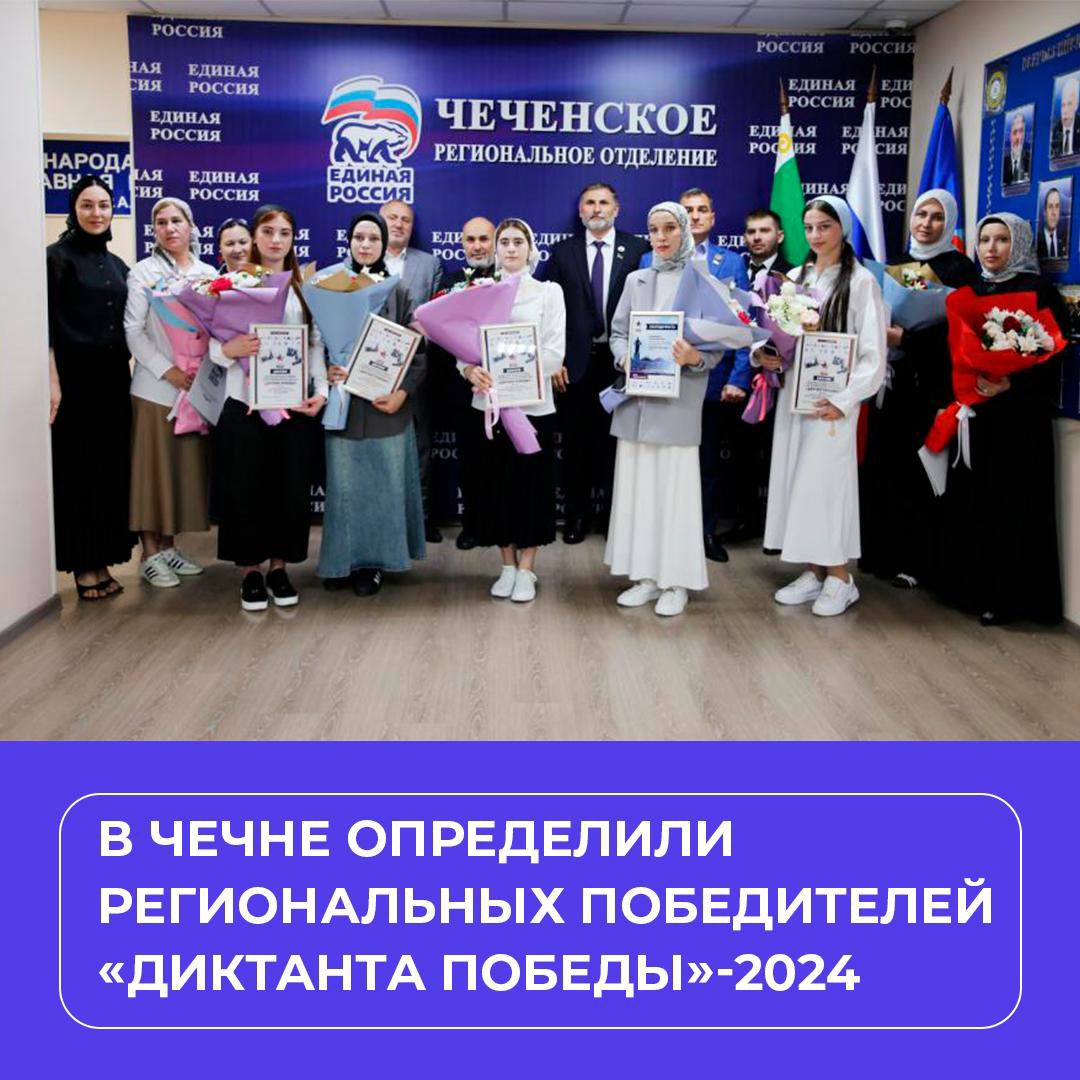 Участниками «Диктанта Победы» в этом году стали около семи тысяч человек в Чеченской Республике. Ученица СОШ №6 села Гойты Селима Оздамирова стала федеральным победителем. Она уже приняла участие в церемонии награждения в Москве, а 9 мая 2025 года получит свой главный приз – участие в Параде Победы на Красной площади столицы.