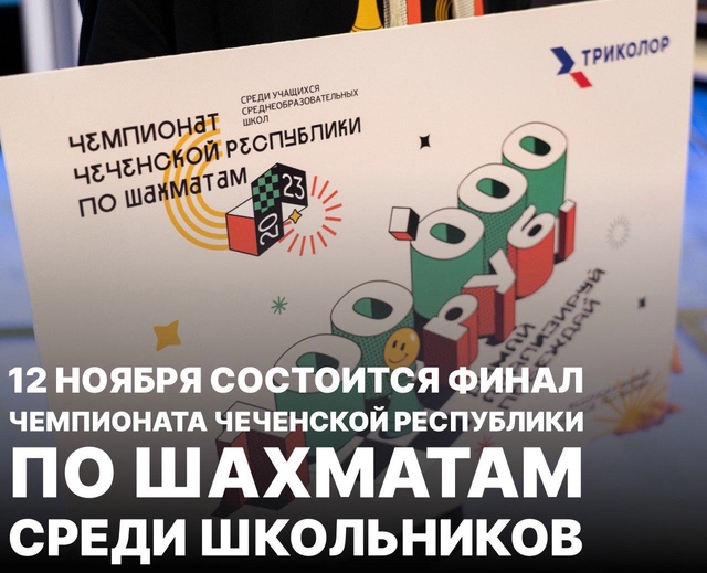 09.11.2024По словам заместителя министра Миннацинформ ЧР Тамерлана Дайниева, турнир проводится второй год подряд и направлен на развитие интереса к шахматам среди подрастающего поколения, выявление и поддержку молодых шахматистов. В соревнованиях принимают участие школьники из разных городов и районов Чеченской Республики.Соревнование проходит в двух возрастных категория: 1–6 класс и 7–11 класс. Победителей ждут ценные призы: телевизоры «Триколор» с диагональю 55 дюймов, саундбары и наборы с наушниками, пауэрбанком и колонкой.Ребята занявшие первые места в своих категориях получат дополнительный приз 100 тысяч рублей. Призы и подарки для участников турнира второй год подряд предоставляются генеральным партнером турнира компанией «Триколор».Финальная часть турнира пройдет в студии ЧГТРК «Грозный» 12 ноября, прямую трансляцию соревнования можно будет посмотреть на странице сообщества Федерации шахмат ЧР в VK https://clck.ru/3EVj6w