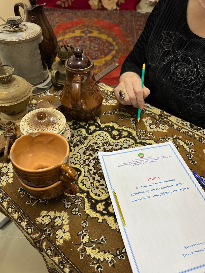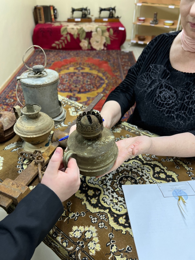 Очередное пополнение фонда школьного музея за счёт поступлений этнографических материалов от родителей учащихся.