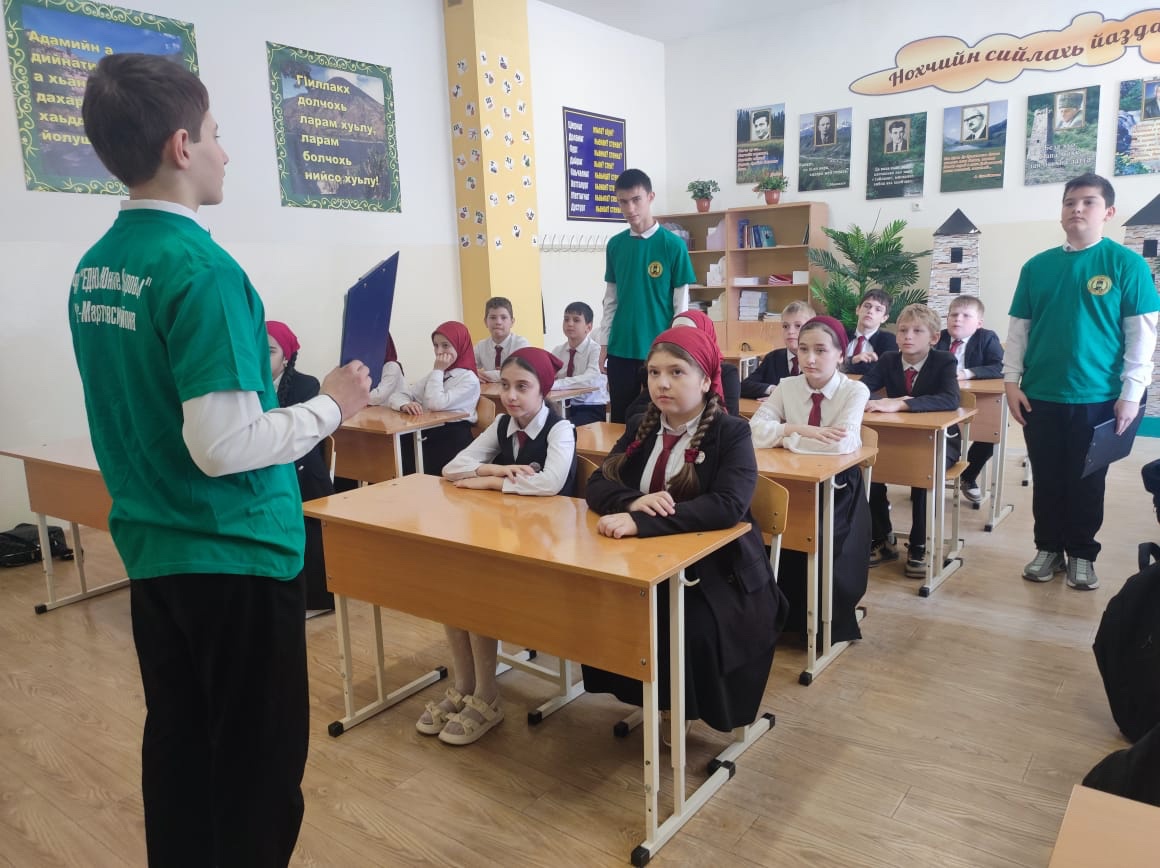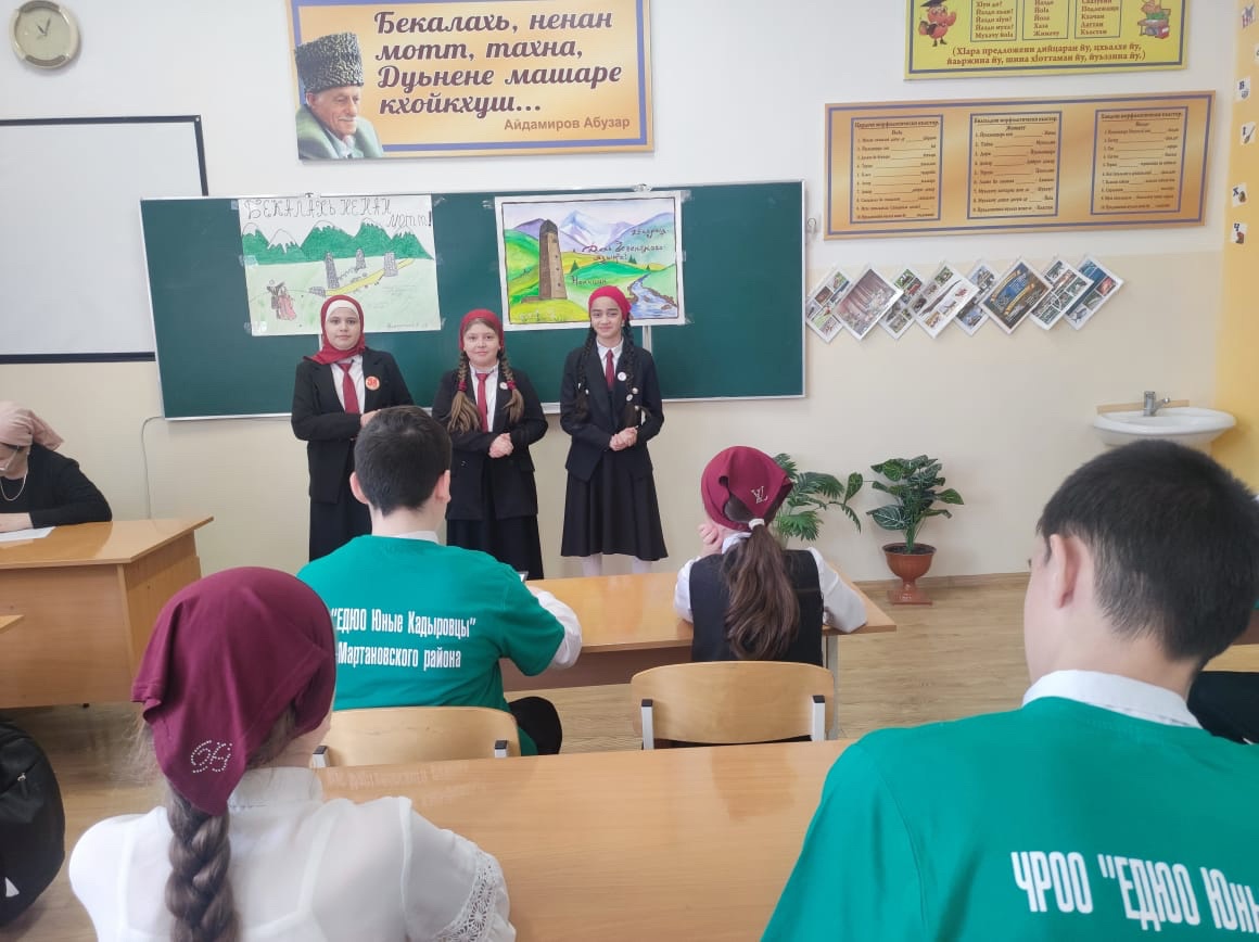 В рамках Недели чеченского языка 22 апреля с целью популяризации чеченского языка, повышения интереса к родному языку, активисты ЧРОО ЕДЮО "Юные Кадыровцы" провели классный час